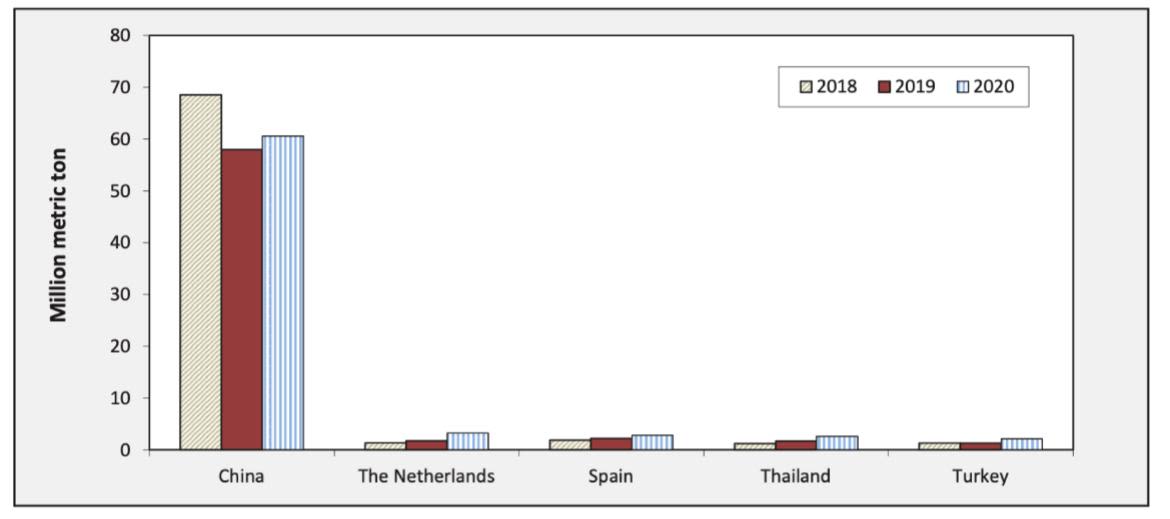 Figure 2: Top five Brazilian soybean-export destinations, 2018-2020 (Salin, 2021)